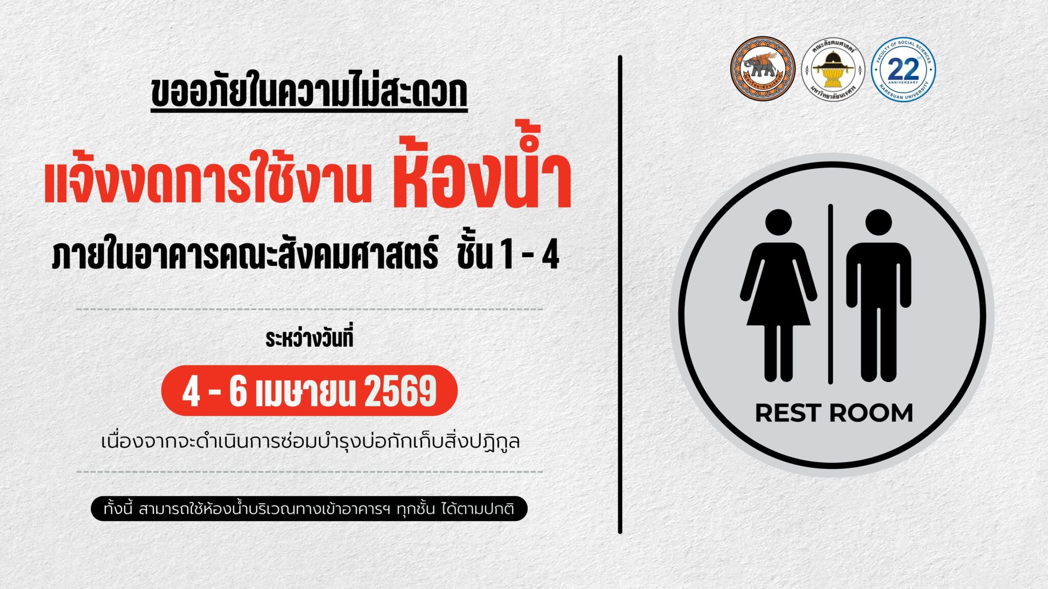 แจ้งงดการใช้งานห้องน้ำภายในอาคารคณะสังคมศาสตร์ ชั้น 1 – 4