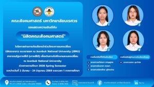 คณะสังคมศาสตร์ มหาวิทยาลัยนเรศวร ขอแสดงความยินดีกับ"นิสิตคณะสังคมศาสตร์" ในโอกาสผ่านการคัดเลือกเข้าร่วมโครงการแลกเปลี่ยนนิสิตระยะยาว แบบขาออก ณ Jeonbuk National University (JBNU) สาธารณรัฐเกาหลีใต้ (เกาหลีใต้)เพื่อเดินทางไปศึกษาและแลกเปลี่ยนณ Jeonbuk National University ช่วงภาคการศึกษา 2026 Spring Semester ระหว่างวันที่ ...