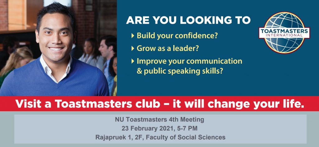 Toastmasters International invites all interested Naresuan Universityfaculties and staff