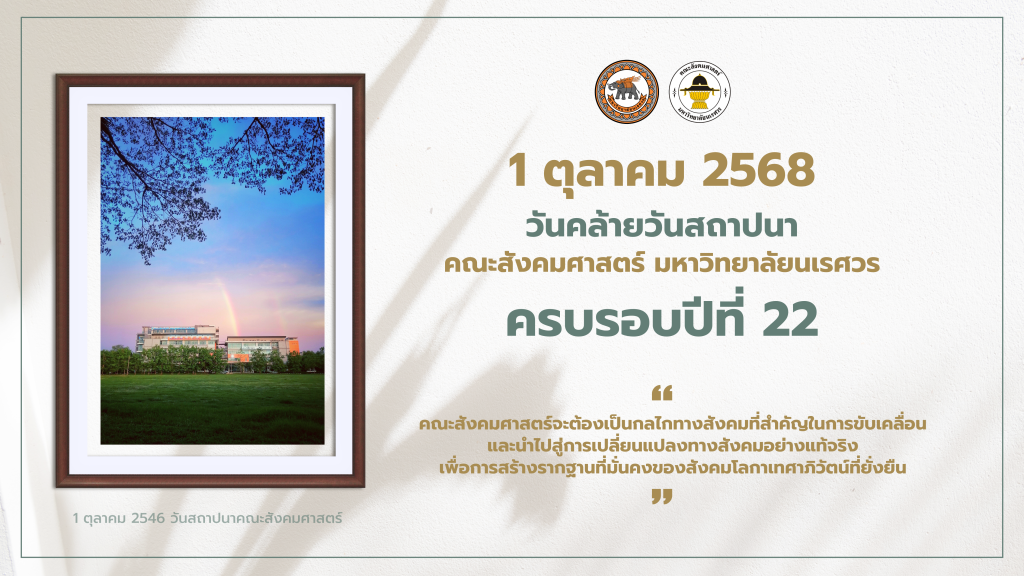 1 ตุลาคม 2568 วันคล้ายวันสถาปนาคณะสังคมศาสตร์ มหาวิทยาลัยนเรศวร ครบรอบปีที่ 22